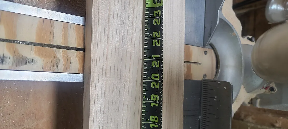 Cut the long piece to 21", then crosscut the two end pieces to 4". I measured up the long piece 14" and 18" (ignore the measurements in the photo) , that is the end piece placement location. I used a biscuit joiner and a #10 biscuit plus glue to join everything together. Since the material dimension is 21" x 16.5" , I fudged that size by using a scrap piece of 1" x 6" and placed it to the left of the work piece to set my zero and Z probe.