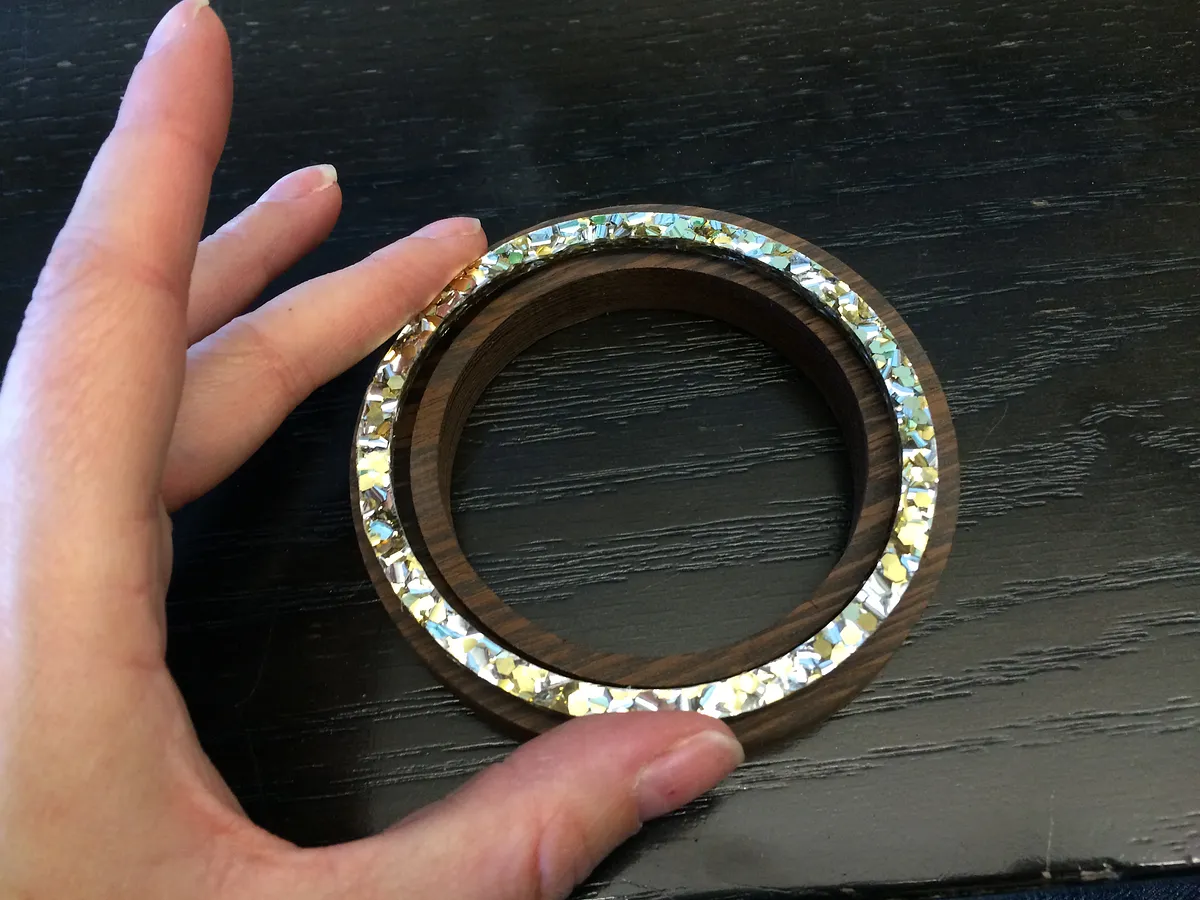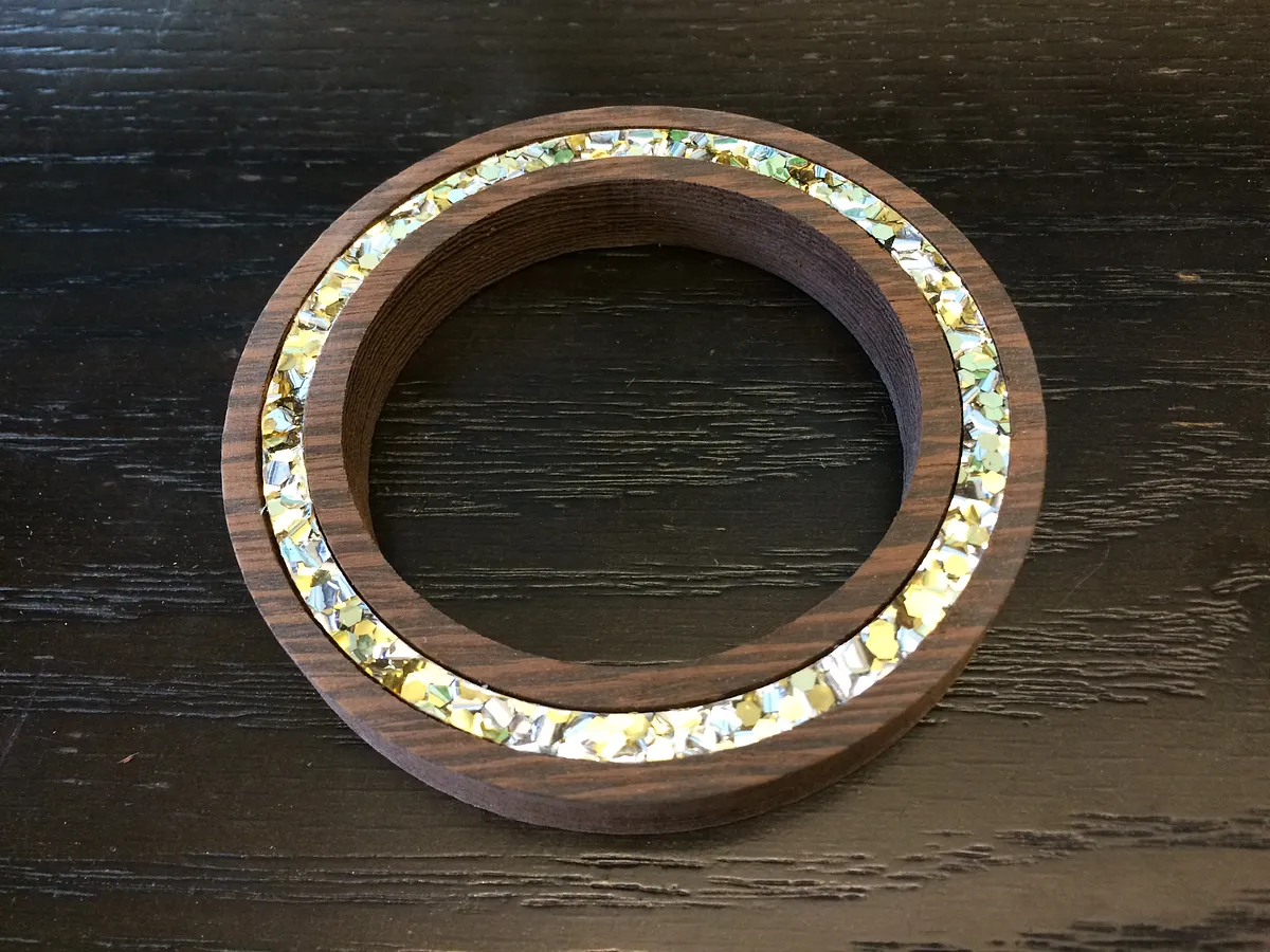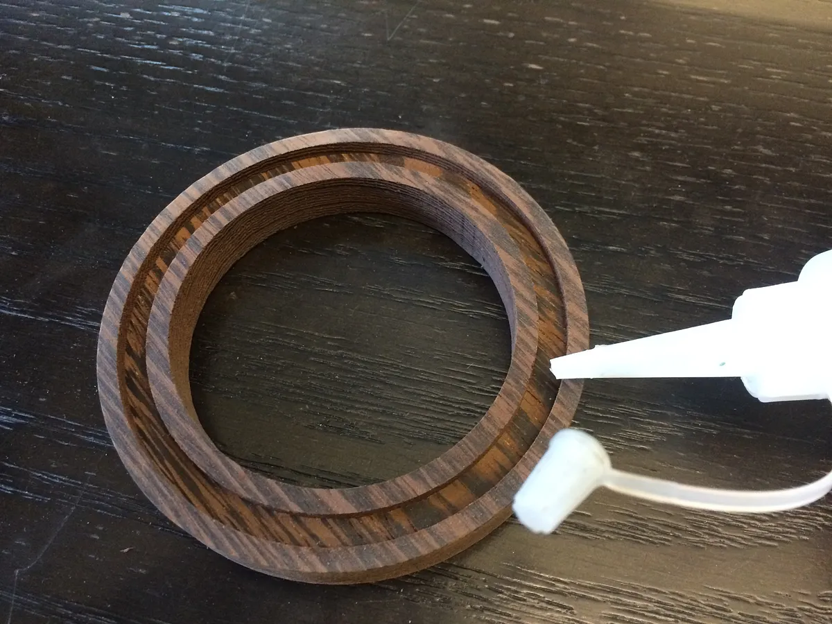 Apply a thin layer of the glue to the bottom of the channel engraved in the Wenge. Make sure the glue comes out slowly and thinly. Immediately set the acrylic into the channel and press into place. Allow it to dry, then your bracelet is ready to wear!
