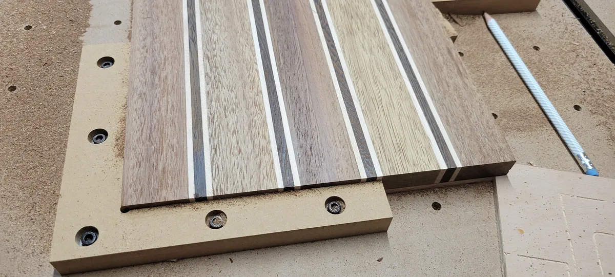 I needed an L clamp and side clamps, but with the screws countersunk into the material. I do a lot of surface planing and wanted to protect my bits from hitting screws.