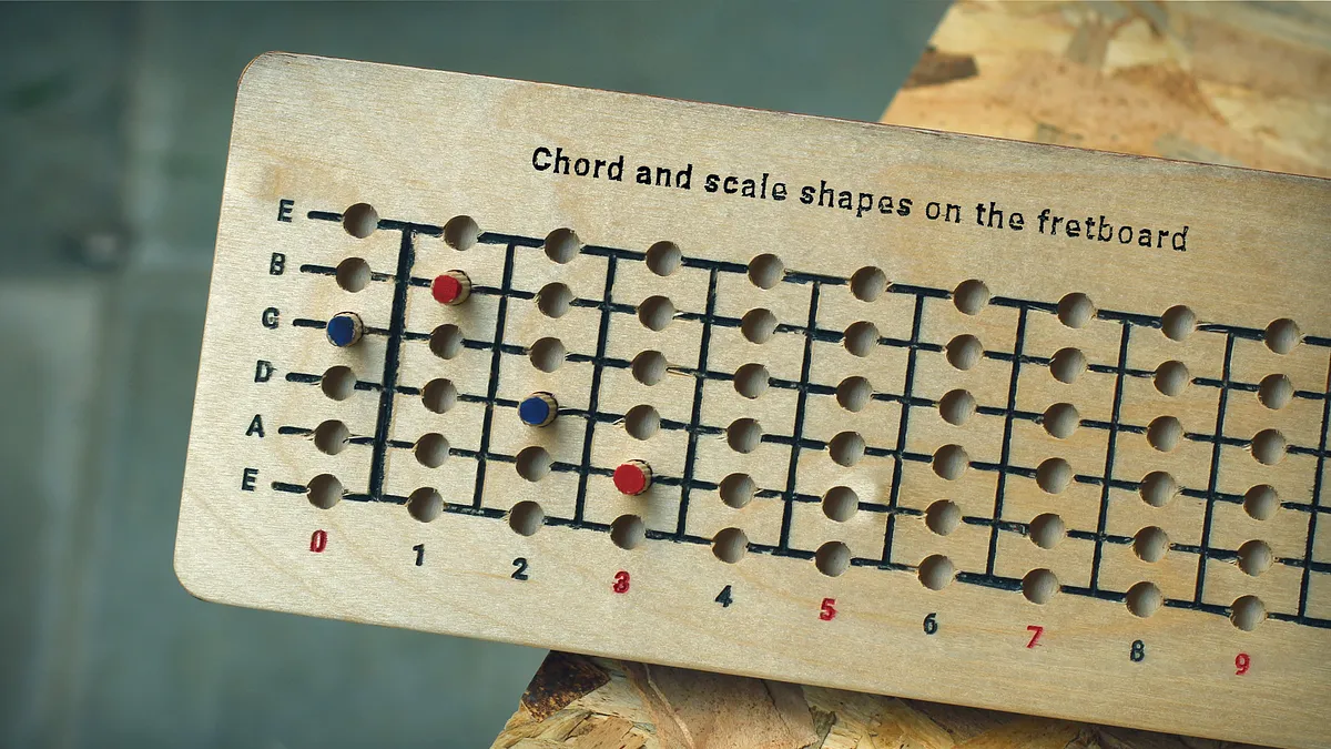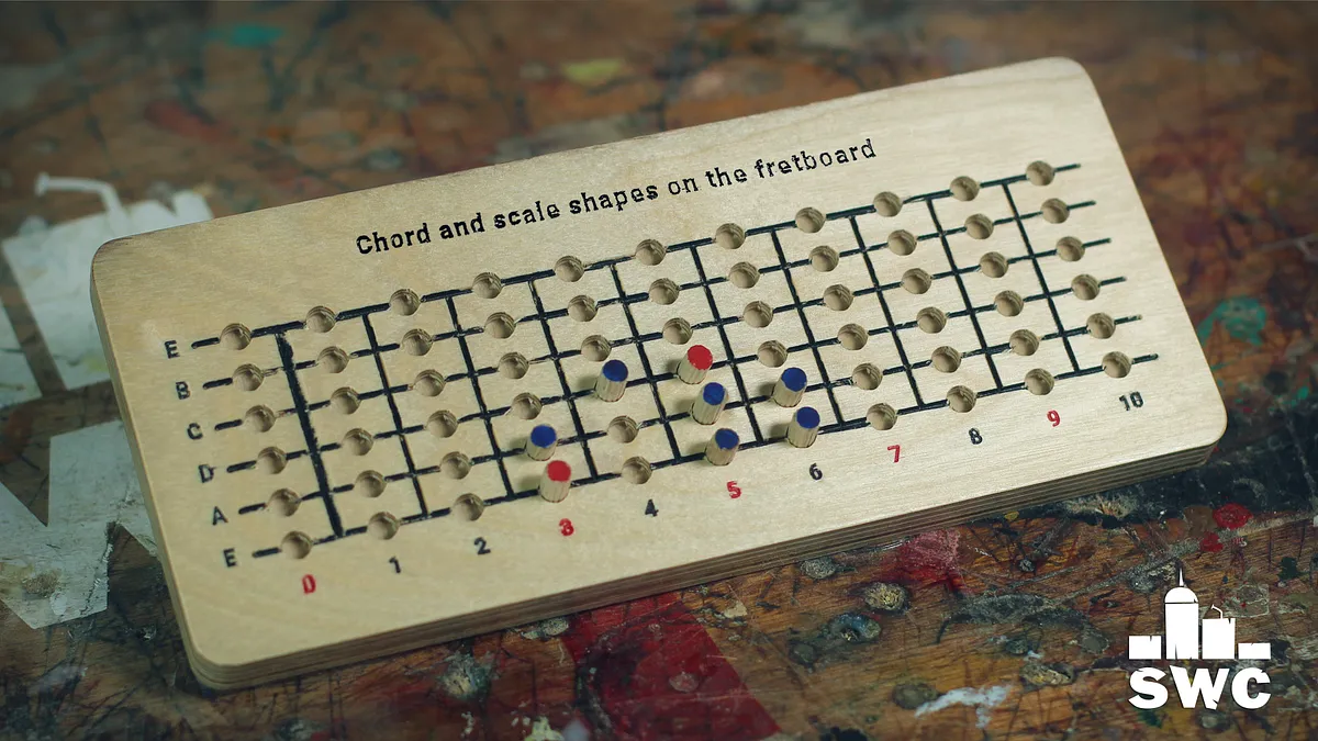 This is a really simple tool to help you improve your knowledge of the fretboard. I made it out of 15mm plywood and 6mm dowels. Video and build article here: https://tinyurl.com/wem935p