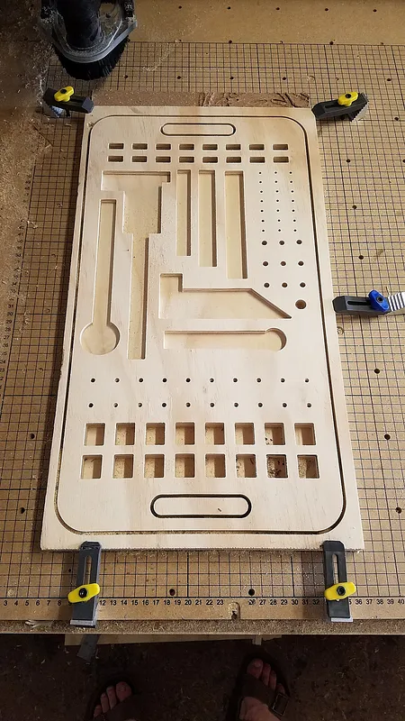 A small 12" x 22" storage tray for all of your X-Carve essentials! Use a 1/8" bit and cut settings: http://easel.inventables.com/projects/CttHR2sERwSh3yHR-SYT1w