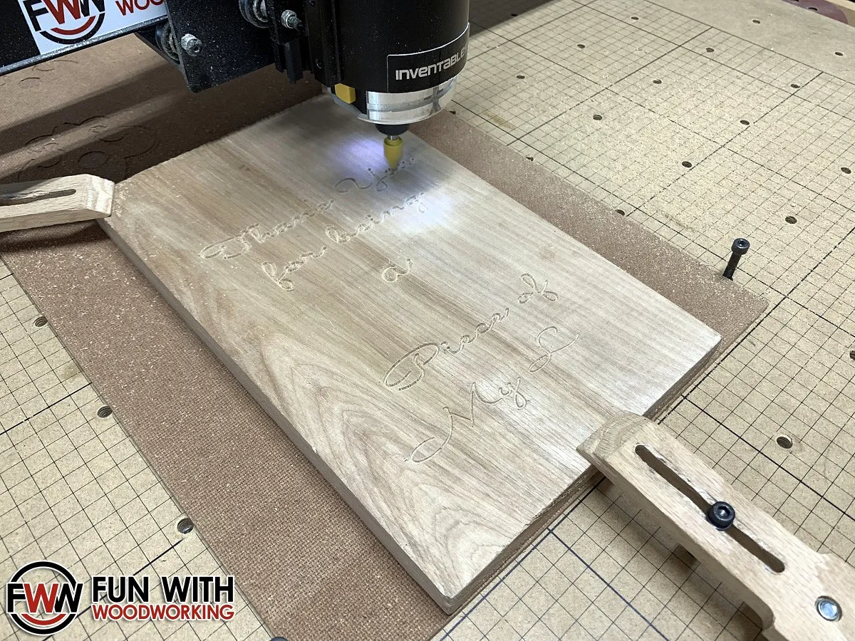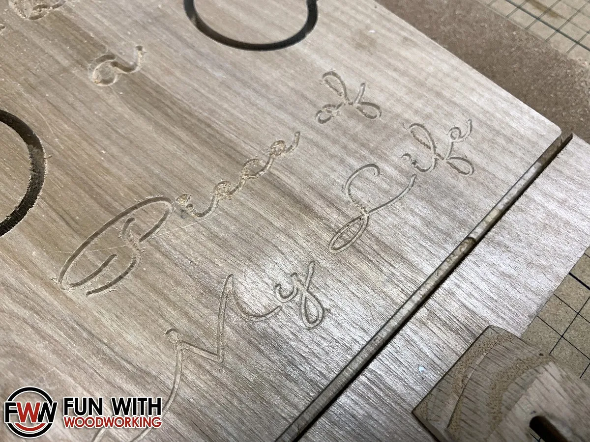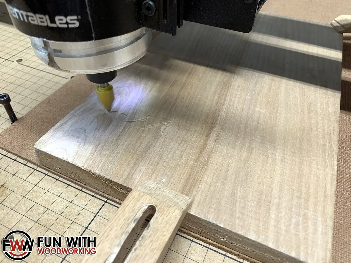I mounted the wood to my X-Carve and carved the text first with the 60° V-Bit.