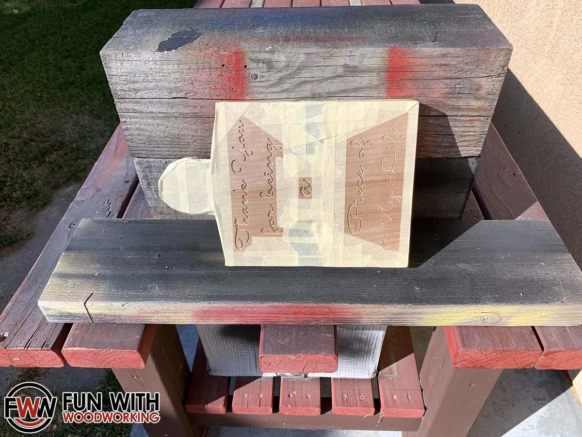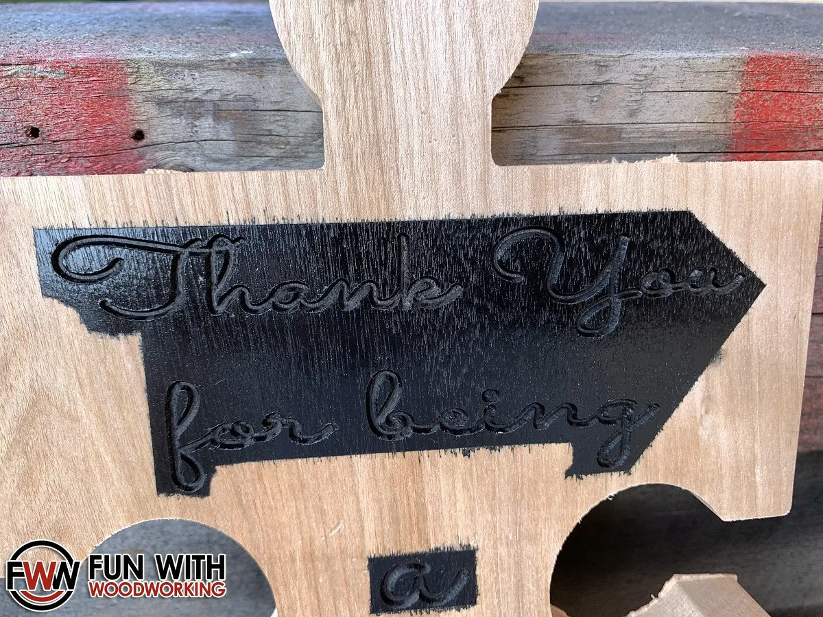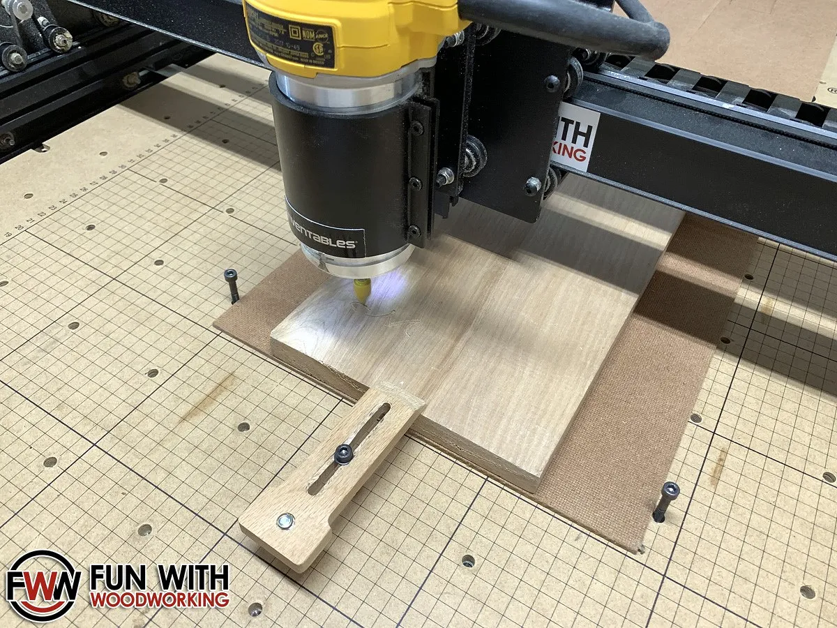 I mounted the wood to my X-Carve and carved the text first with the 60° V-Bit.
