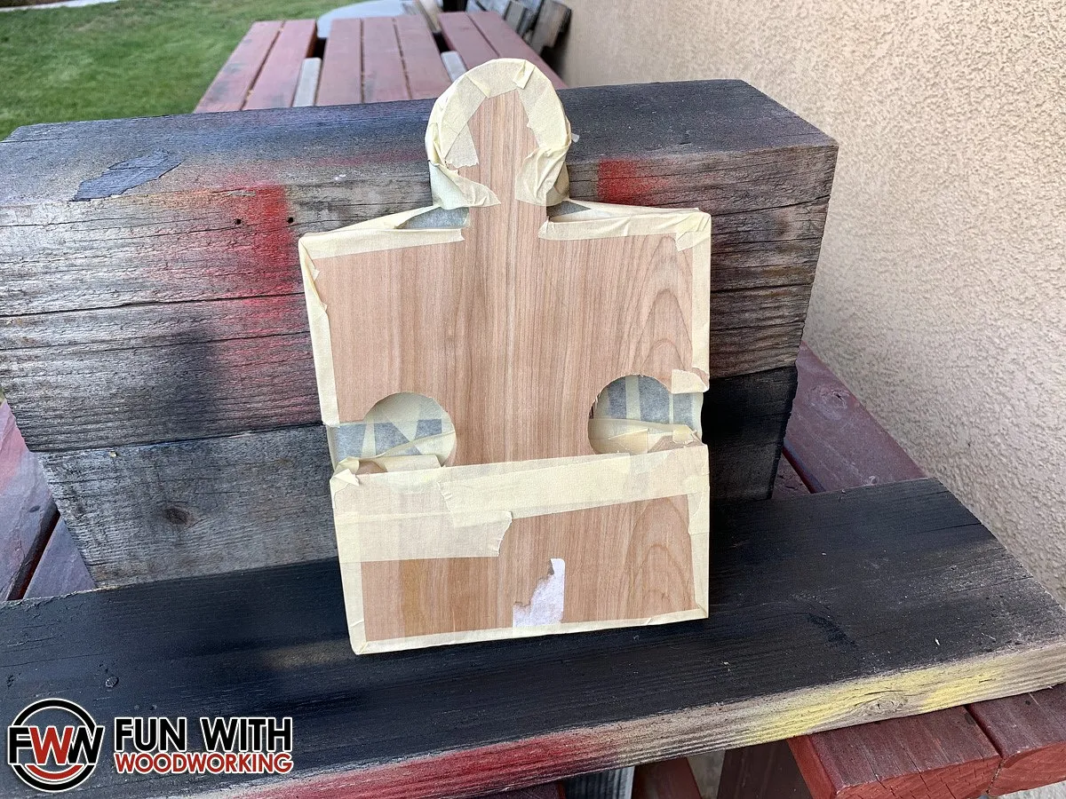 I then changed the bit over to the 1/8" 2 flute bit and cut out the puzzle piece. It didn't quite cut all the way through the material so I cleaned it up with a flush trim saw and a razor knife.