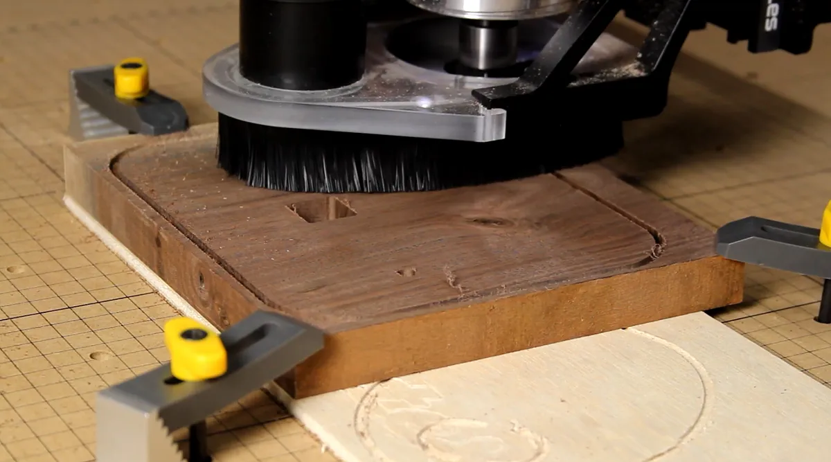 Carve the base from 3/4" lumber. It has two partially drilled holes for 1/4" adapter plugs and a mortise to accept the tenon in the top piece.
