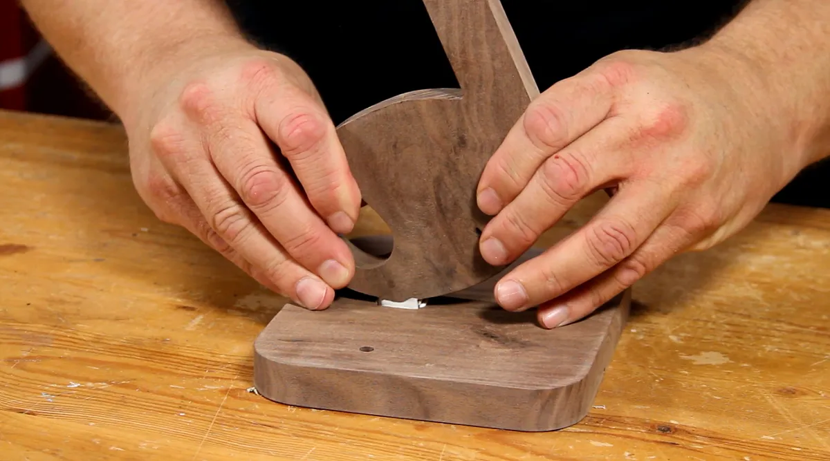 Use wood glue to glue the top and base together. Wipe away excess glue.