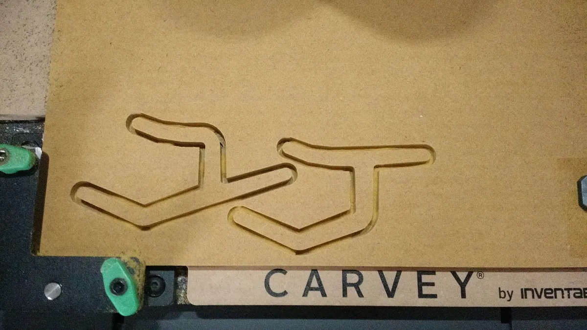 Use either double sided tape or small tabs to secure the hooks in place. Mill the design out of your choice of MDF or experiment with new materials.