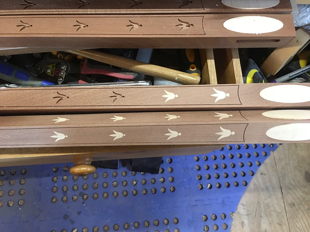 This table I built by hand took 6 days inlaying these legs by hand and here the unfinished legs are what I produced using Easel and my cnc the legs have an extra bellflower and took about 6 hours. It makes you think anything is possible? I hope this is an inspiration for some of you?