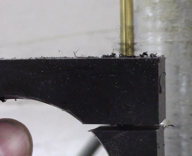 to allow room for the tap, as well as some wiggle room for the bolts, I drill out the top half of the clamp slightly larger than the tap drill size.