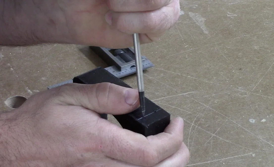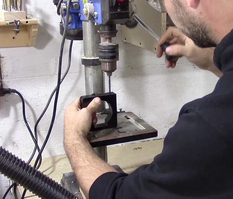 layout the hole and make a small hole punch mark for the drill bit to follow. you can get the placement of the holes form the sketch up files. finally drill the hole to the correct tap drill size. I used a #12 bolt which has a tap drill size of #16.