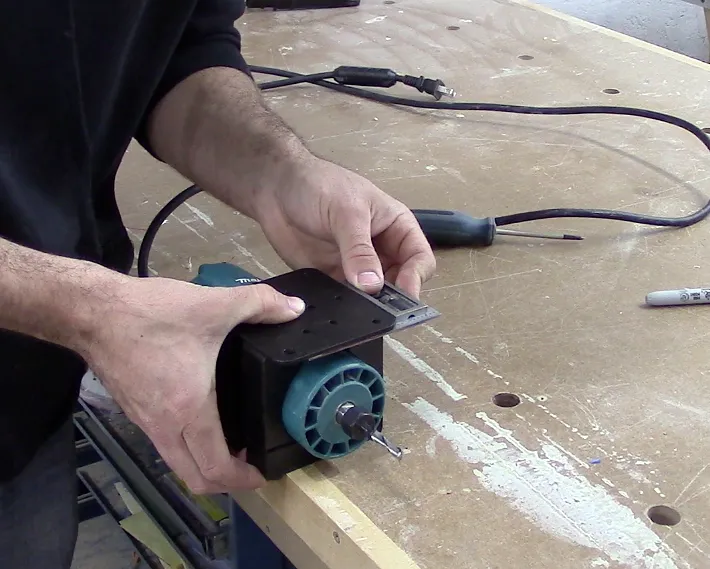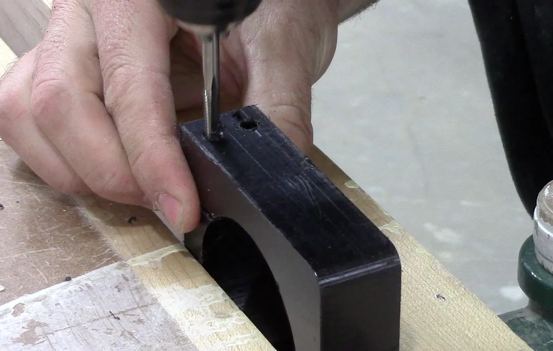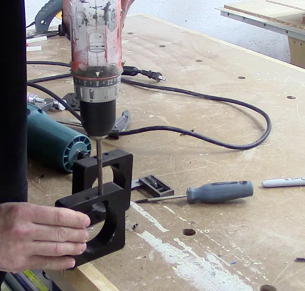 It is important the clamps remain square to the mounting plate as this will affect you cut if the router is out of square. Once square you can mark the holes by lightly drilling through the plate and into the clamps. I enlarged the holes to 1/4". after the holes are marked, you can drill the rest of the way through the clamps