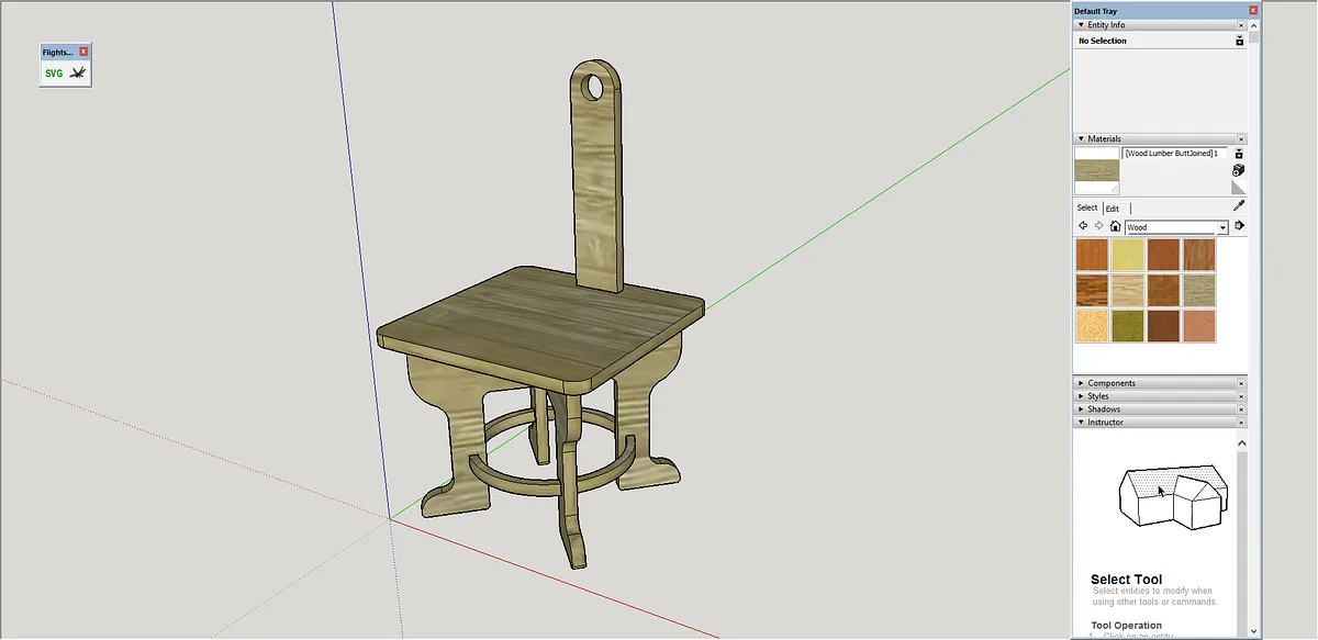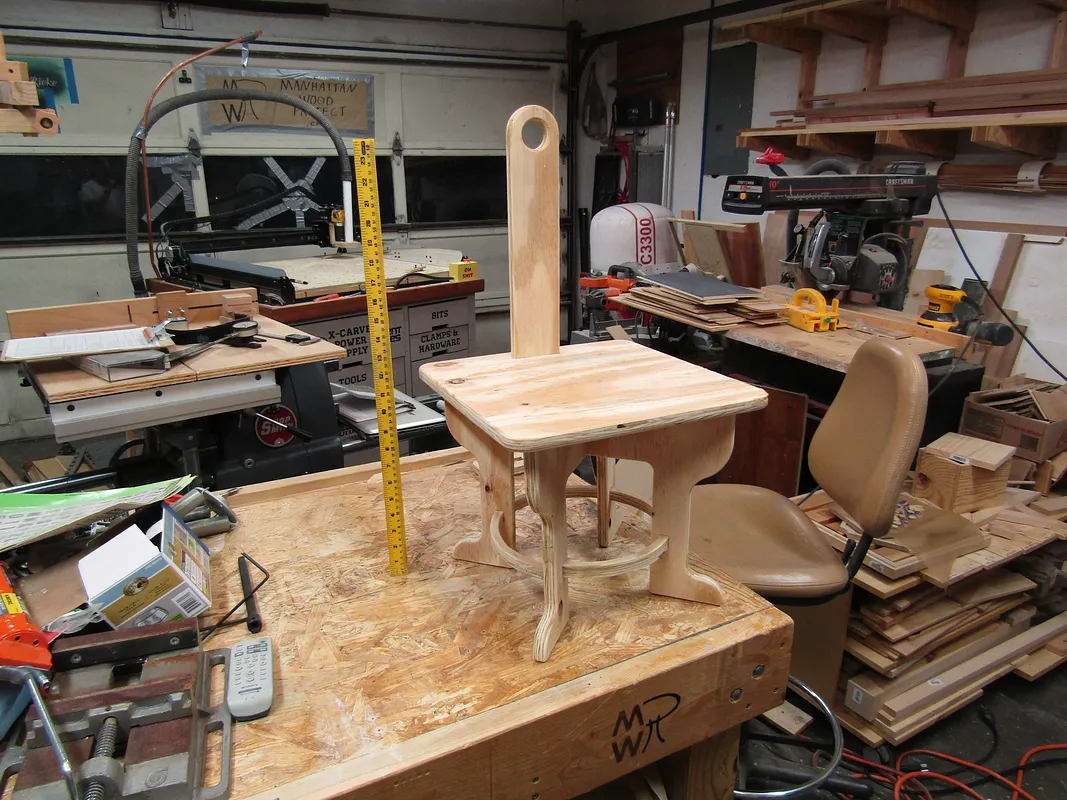 My machine has X and Y axis stiffness modifications, and a Dewalt 611. I used a 1/8 inch 4 flute upcut bit on the whole project. The cut settings I used for my stool were .050" depth, 30 inches per minute, and Dewalt speed of 2.