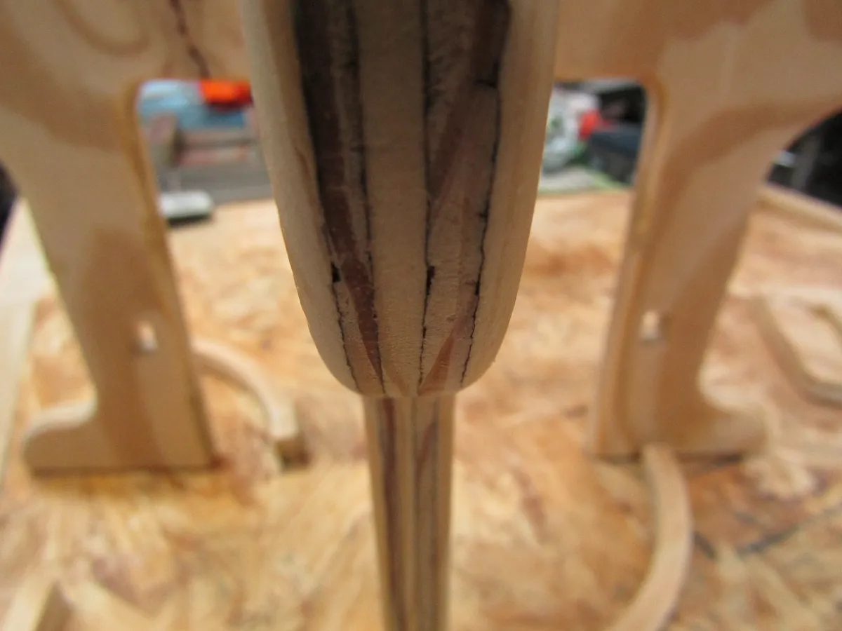 After everything is sanded smooth and the dry fit is successful, glue the base together in whatever order works best to make sure everything fits right. The circular supports may be the most difficult to fit in place, so 1/8 inch may be removed from one or both ends if absolutely necessary for assembly.