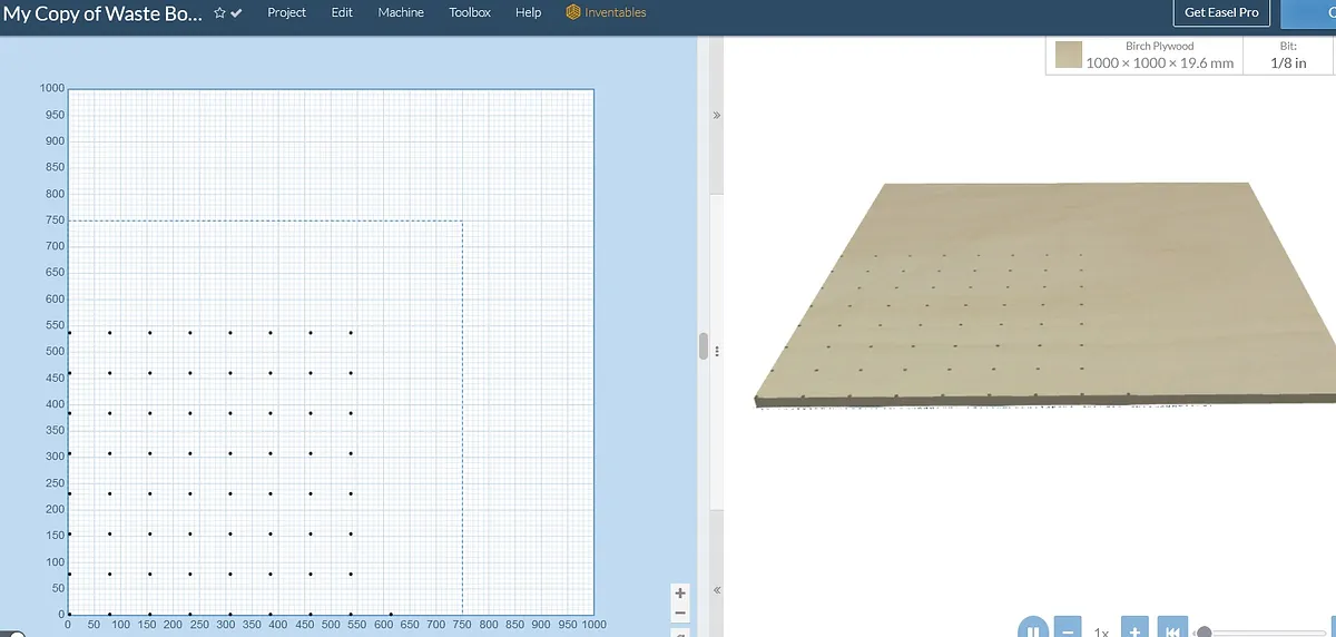 I used the specs of Inventables for the hole spacing but made the holes .5 inch to allow for variances
