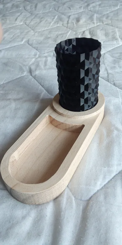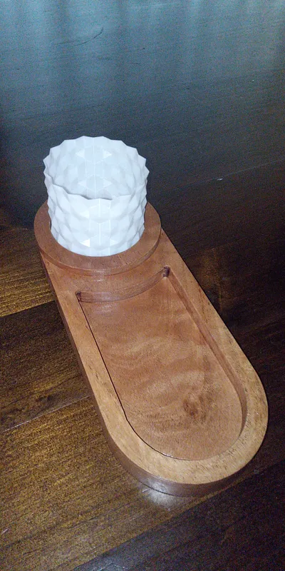 I made this universal catch all tray and 3D-printed a small vase to insert into it for holding pencils or even to be used as small flower vase