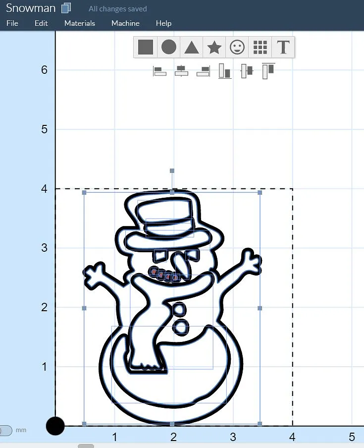 Select the entire snowman and right click on the the upper right handle of the selected box to resize the snowman to whatever size you like. I found that about 3.5 inches tall worked pretty well.