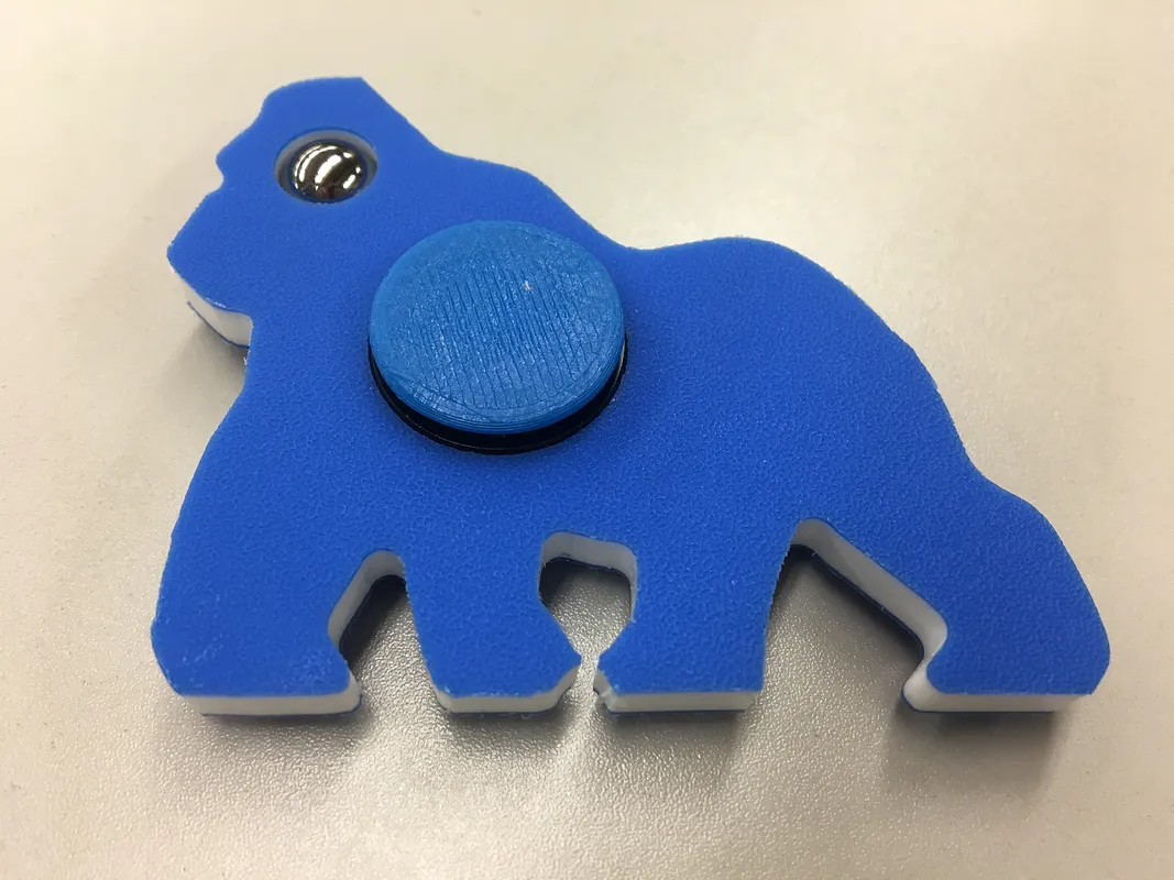This was made as part of a CAD project at Weaver Middle School. This is a balanced Gorilla Spinner with a 9.5 mm bearing ball. The bearing is located at its center of mass (using .25" HDPE).