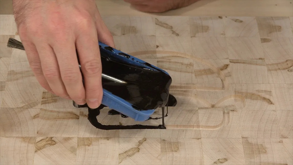 How to make an engrain cutting board with food safe epoxy inlay. Made from soft maple and the food safe epoxy is tinted with food coloring. The endgrain cutting board dimensions 17.5 x 10 x 1.5. Finished with General Finishes Salad Bowl Finish.