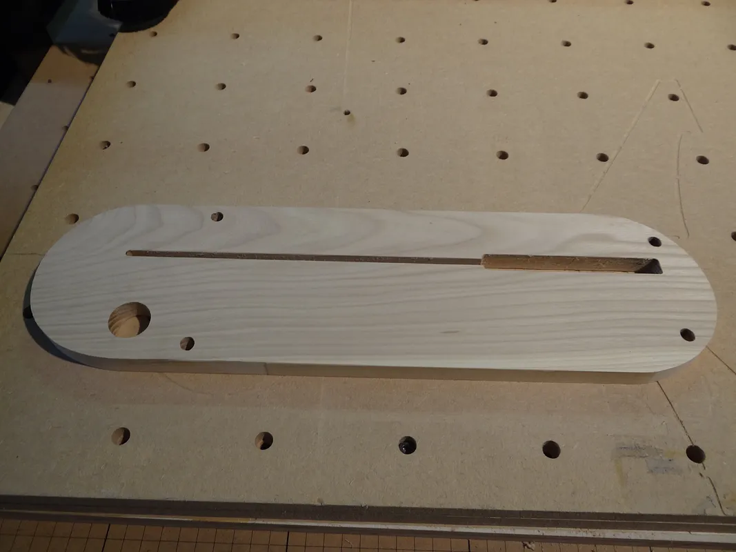 An insert for my SawStop Tablesaw. NOTE: I intentionally made this just a hair too long so that I could sand the ends for a very tight fit. The 4 small holes are for the addition of 1/4-20 insert nuts in case your Insert is not the exact thickness needed.