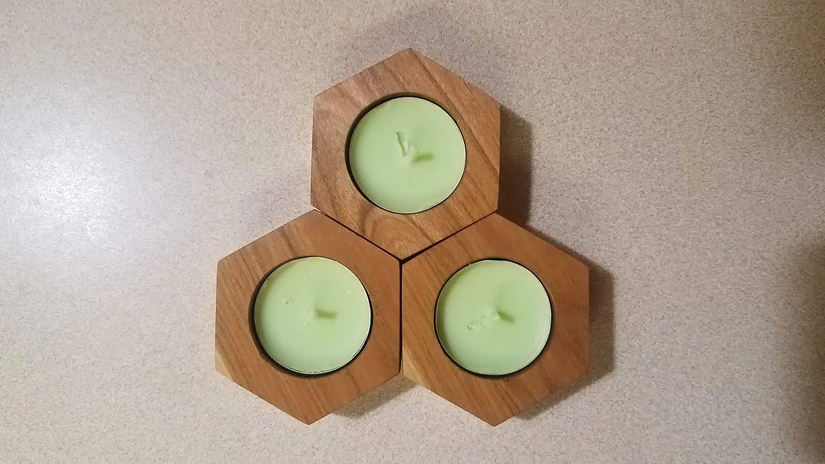 I designed these in Illustrator/Easel to compliment large candles and a hexagonal snowflake trivet that I also made. I went with sets of three, but something like 6 would be cool too.