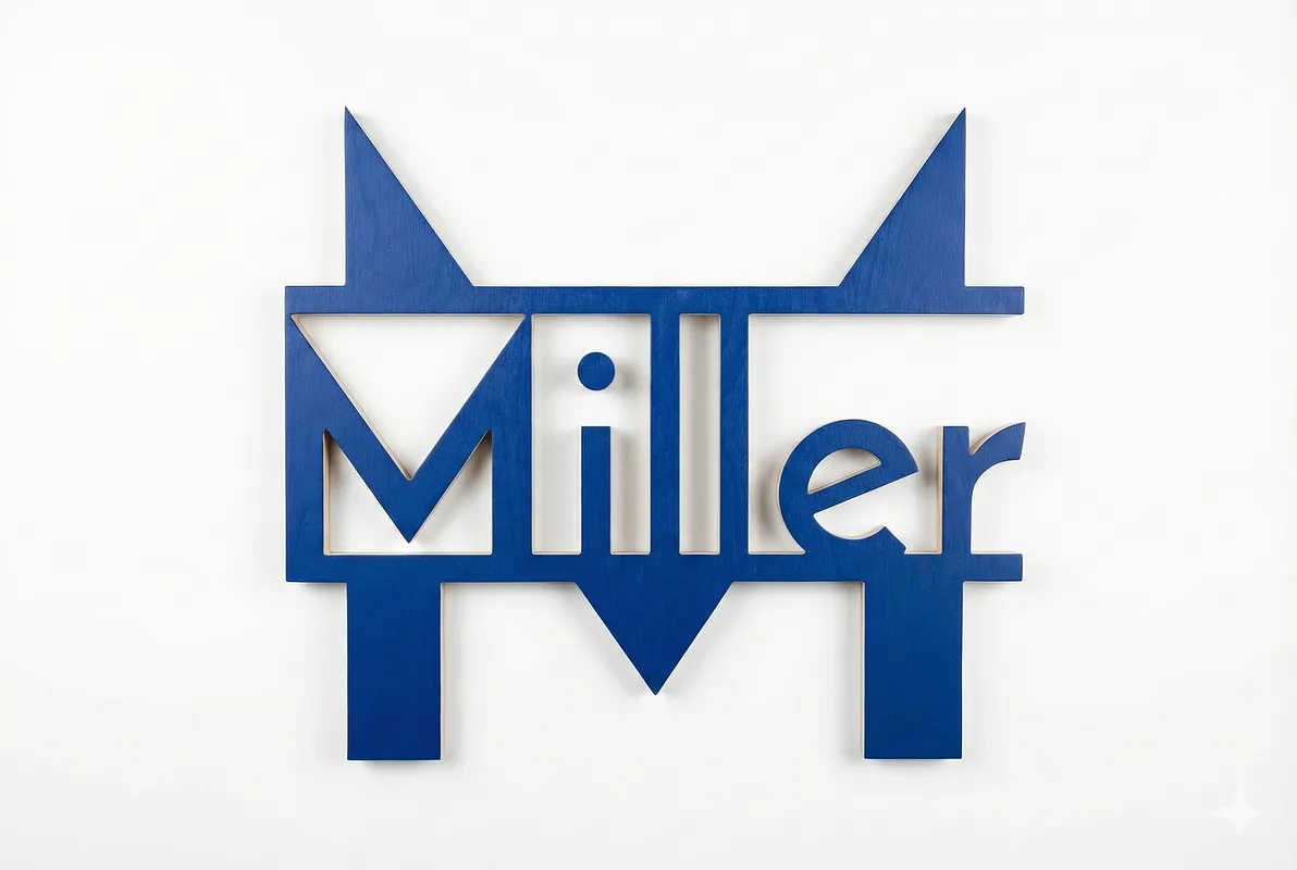 This Miller monogram cutout from birch plywood using the plain style and Josefin font. Perfect for hanging on a wall.