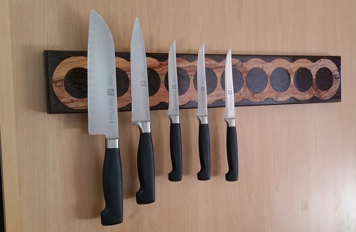 Use a forstner bit or easel to cut out holes in the back of the board to place the magnets. Then glue them in place.