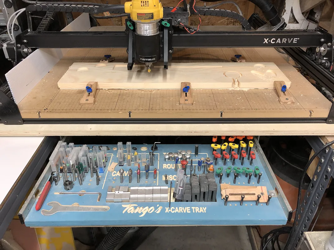 This is my 12x24 drawer organizer. I attached another 12x24 pieces under it and attached two drawer slides on both ends. It hangs under my work bench for easy pull out access.