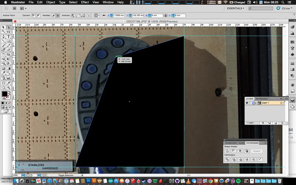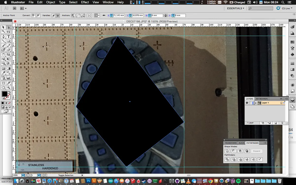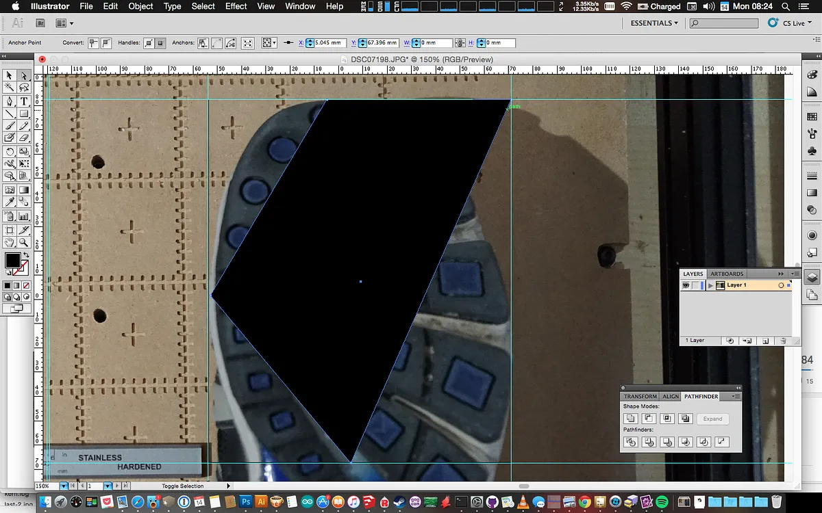 Add a few more points near the rulers marks where you want the tabs to go. Drag these points out from the shoe. For the best result add a ruler mark about 10mm out from the ruler marks you made in Step 2