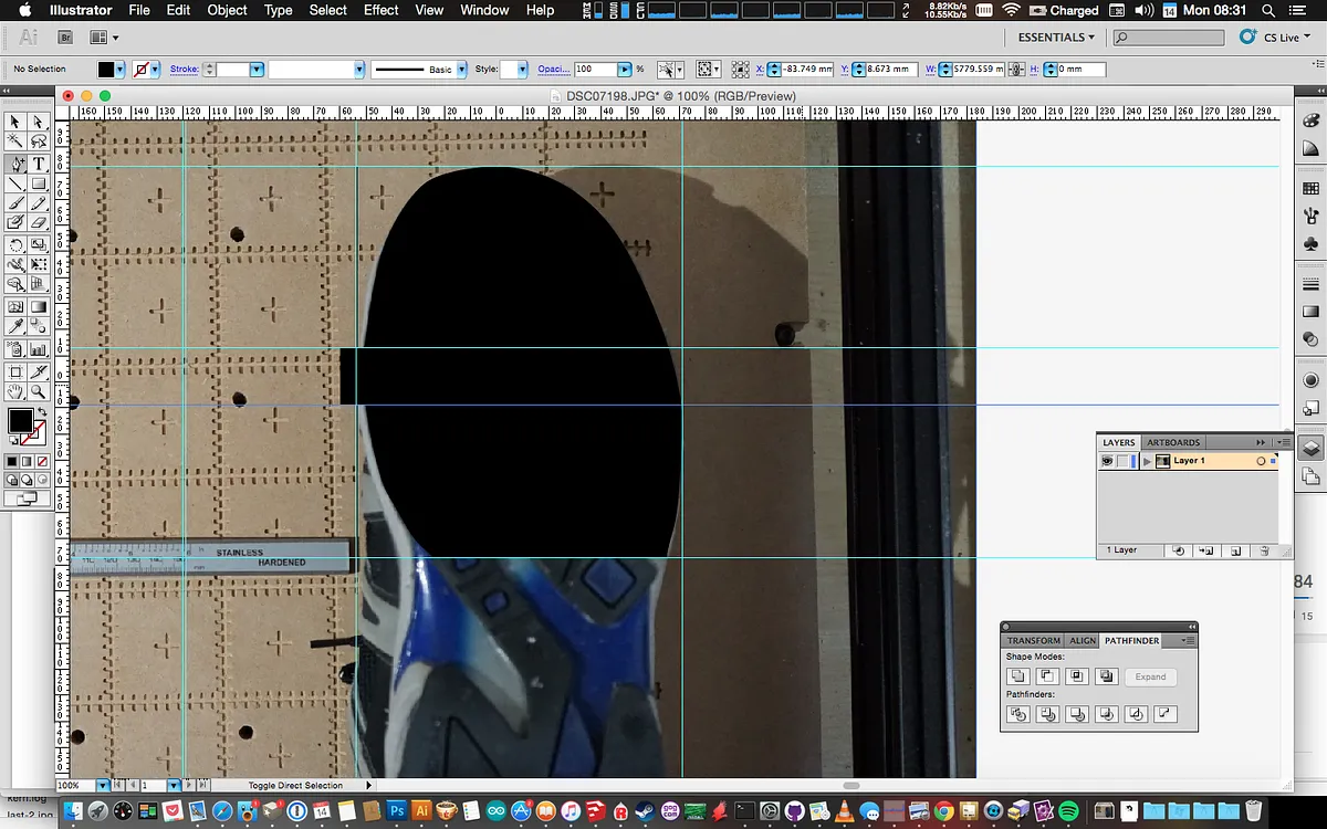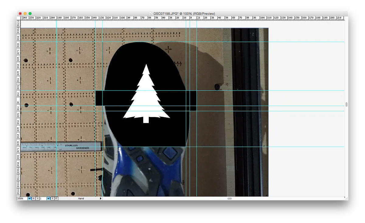 Drag a rectangle over the part of the shoe that you want to cover and then move the rectangles points to the widest parts so that you can still see the photo underneath.