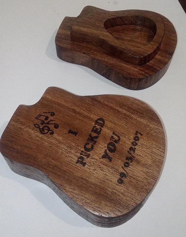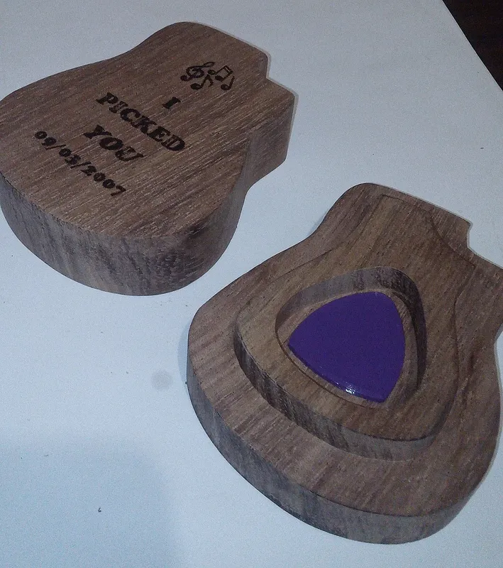 Made this to hold guitar pics and used laser to customize lid for gifts