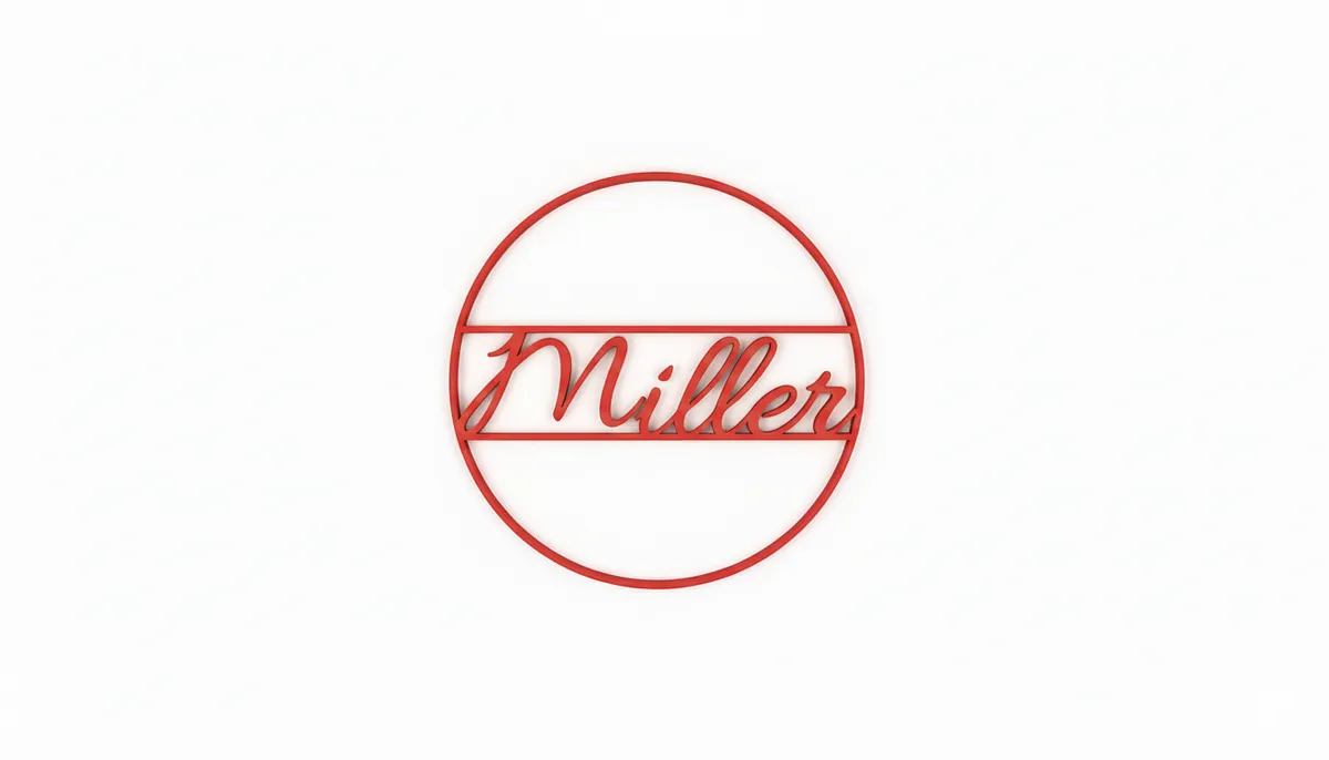 Elegant monogram featuring the name “Miller” styled in the flowing Allura script font. This design uses the circle style, cut out to be mounted and highlight the graceful letterforms and smooth curves characteristic of Allura. Perfect for personalized gifts, wall décor, or family name signage.