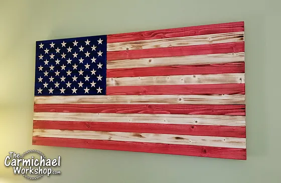 To get started, watch my video of this project to see the basic process of building the flag. "Click here for a complete list of supplies and detailed instructions on my website.":http://www.thecarmichaelworkshop.com/2019/05/make-diy-rustic-wooden-american-flag.html
