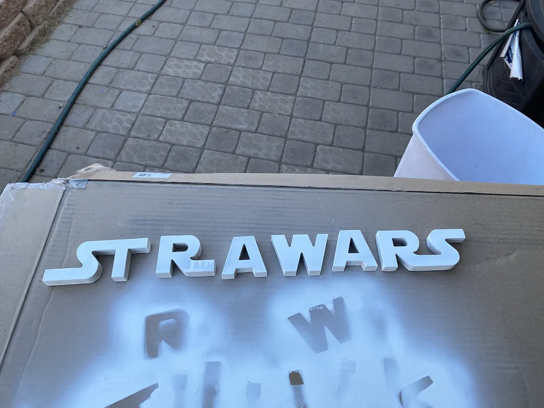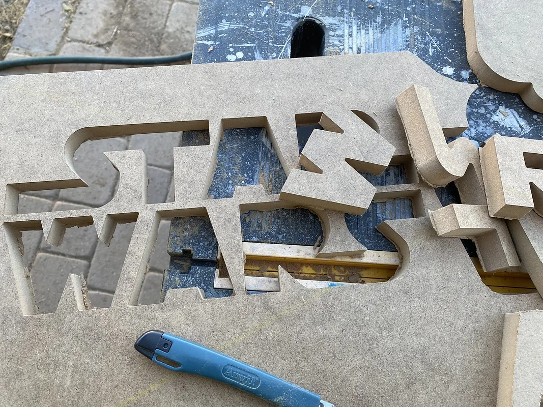 I printed this out on to 28 in long x 12 in wide board as one whole print but the items are easy to resize so long as you keep the proportions consistent. you can make this as big as you want or as small as your system can cleanly cut.