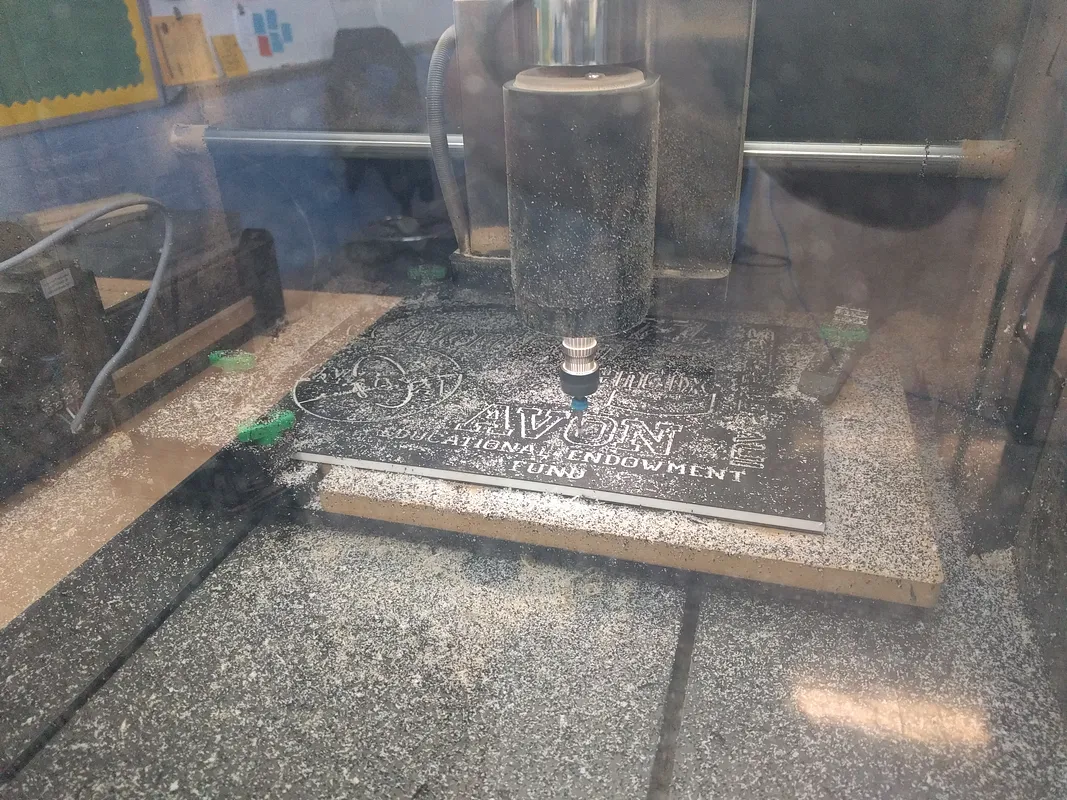 This is Team AERO's sponsors from this season. We carved the design using HDPE and a 1/16" upcut bit.