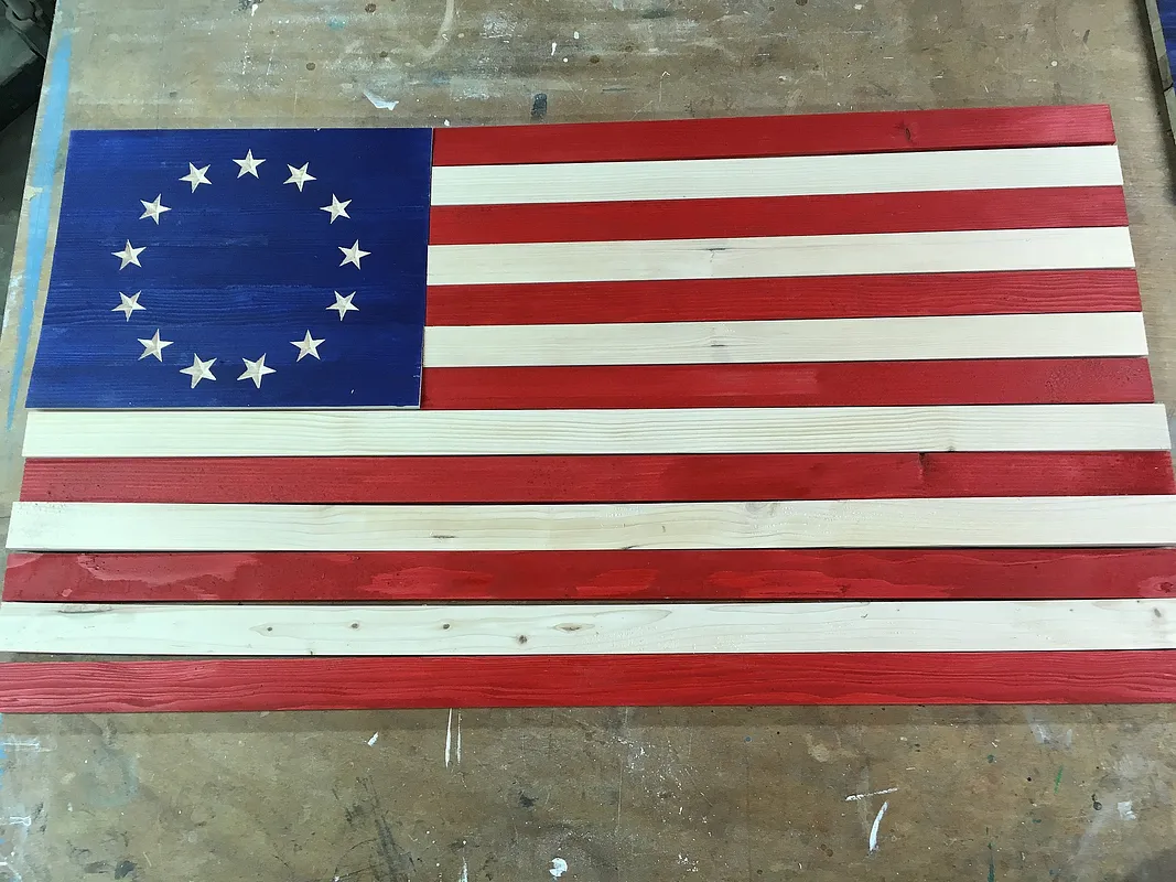 This is the stars for the Betsy Ross Flag with a blue field of 13x10.5. The flag is 37x19.5 with the strips 1.5 inches wide. I have a YouTube video of the process and here is the link: