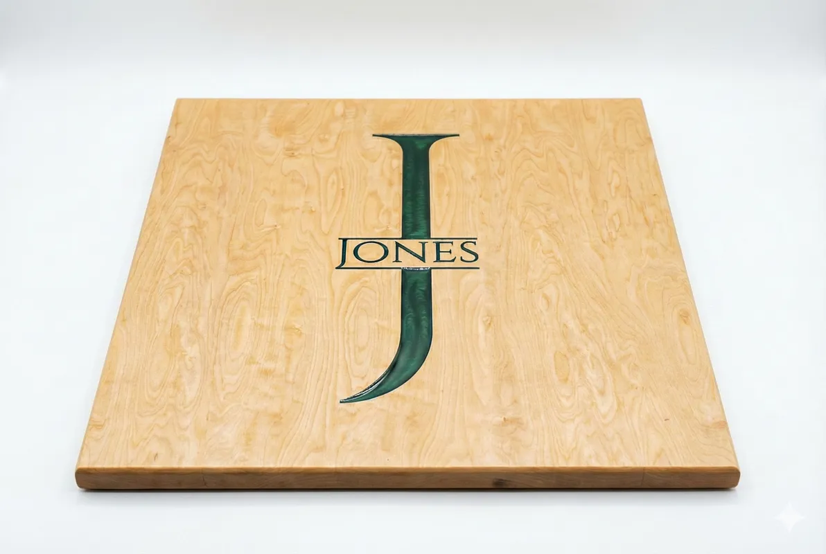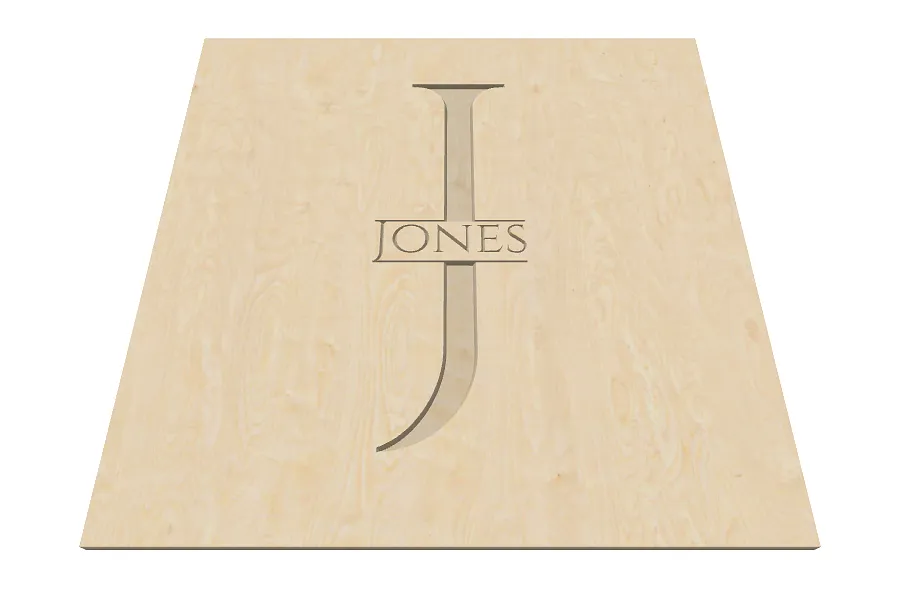 Engraved monogram featuring the name “Jones” styled in the thin Cinzel font. This design uses the plain style and precise letterforms characteristic of Cinzel. Perfect for personalized gifts, cutting boards, or family name signage, this project cuts beautifully in wood.