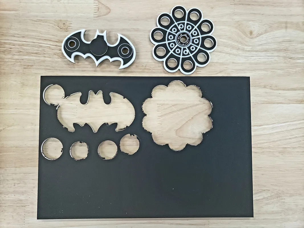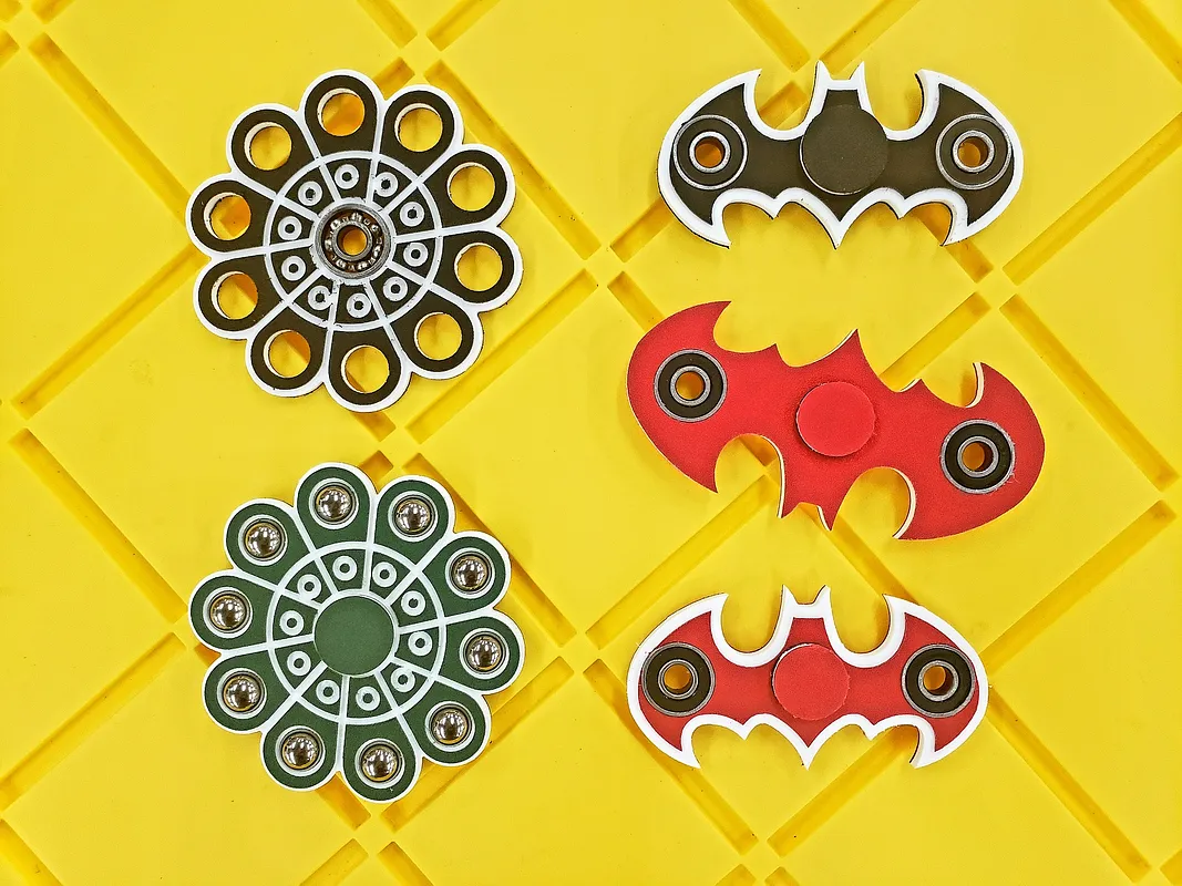 We have designed this fidget spinner as a starter project to teach CNC Carving and Routing at Innovation Lab. It accommodates 0.5in diameter steel balls that you can find on Amazon.com