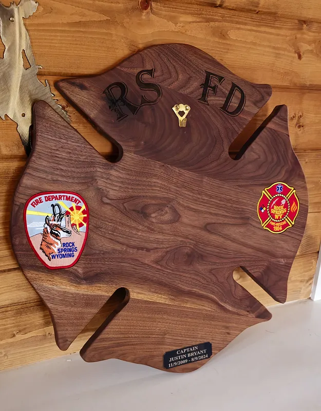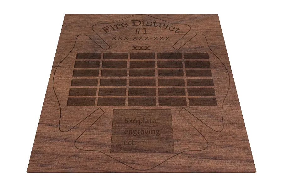 this design has worked for two different styles of plaque. one with a section for 1x3 name plates, and another version with a hook to hold a helmet for a retirement gift.