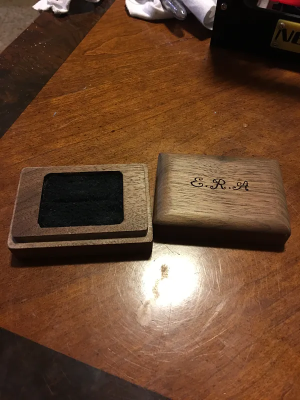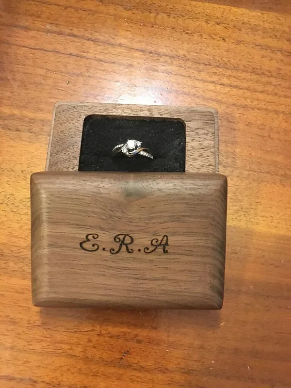 This was a great project, I took your Joe Whittakers plans and shortened them up to make a more common size ring box, I then used a 3/8" round over router bit on the lid to give it a nice curve, and then engraved initials in the top with a small laser engraver.