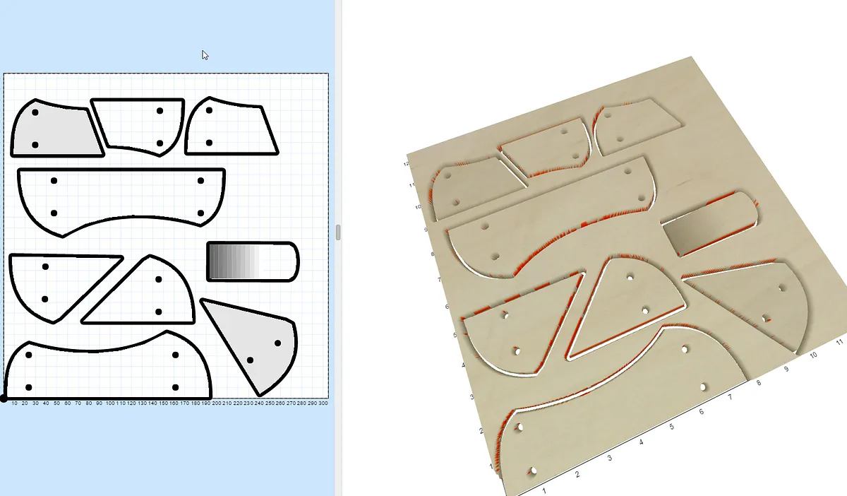 Open the project in Easel. Depending on the thickness of your ply and the thickness of your plane blade, you may need to adjust how many layers you need, or if you need a layer to be thinned down.