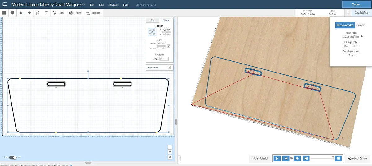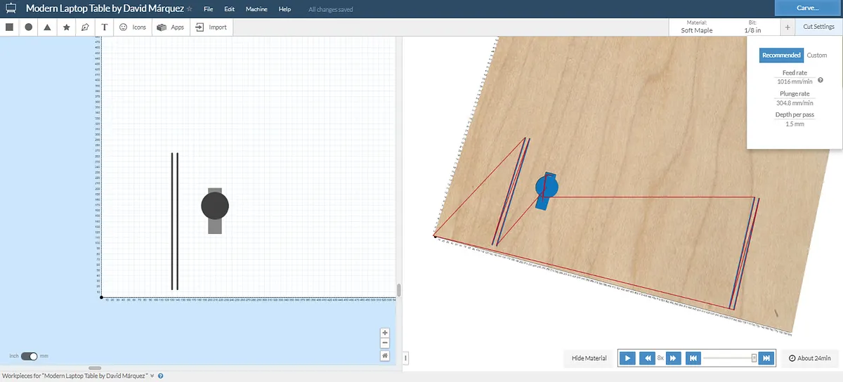 With the first workpiece, you must carve the part where the wireless charger will go and the cuts to bend the wood.