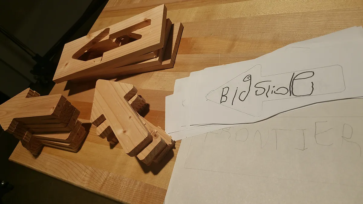 Sign post arrows for a Pre-K project at the Mount Vernon Presbyterian School's Preschool.
