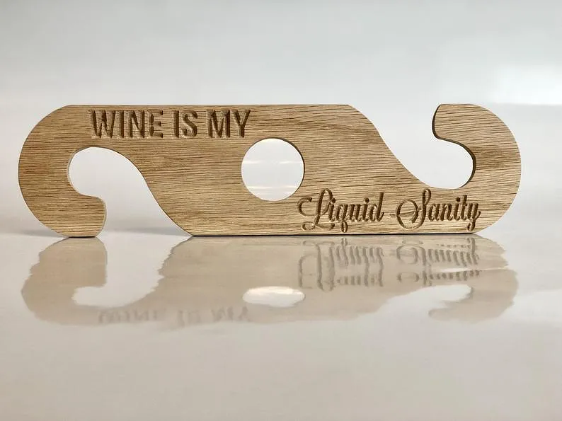 A fun wine caddy with catch phrases. Perfect for the wine lover, even on the go.