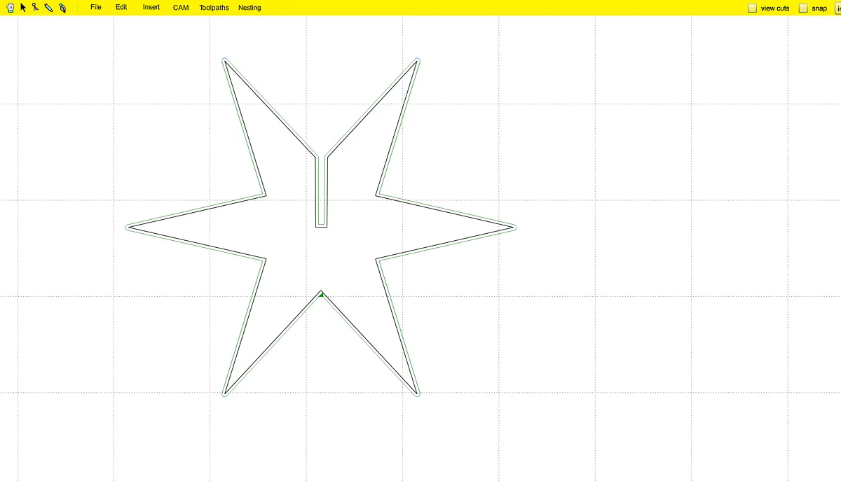 I used Illustrator to create a 1/8" notch halfway into the star design. This allows the two pieces to slide into each other since the wood is 1/8".