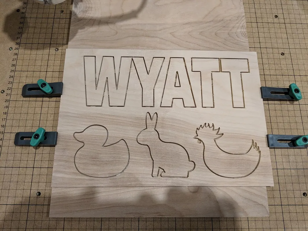 Just a little puzzle for my nephew. Should've made the rooster a bit bigger I guess... his chin part came off and got sucked into the shopvac. :(