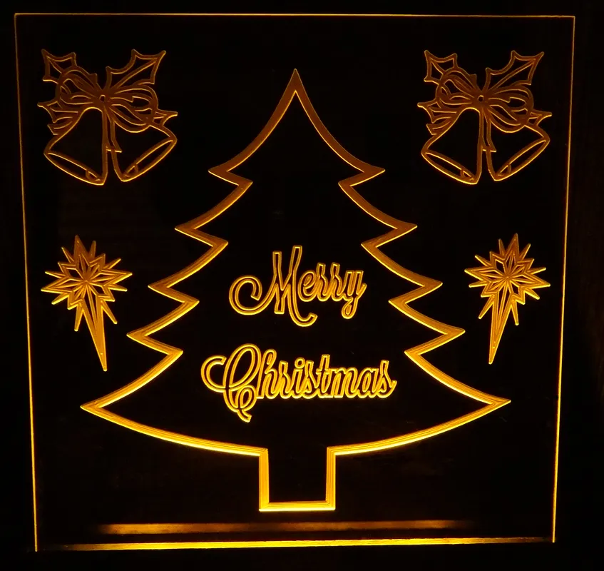 My first edge-lit sign! I'm very pleased with this! It was done entirely in Easel. The text is flipped horizontally as it is engraved on the back side of the acrylic. I probably should have flipped one of the bells to make it more symmetrical but didn't think of that at the time.