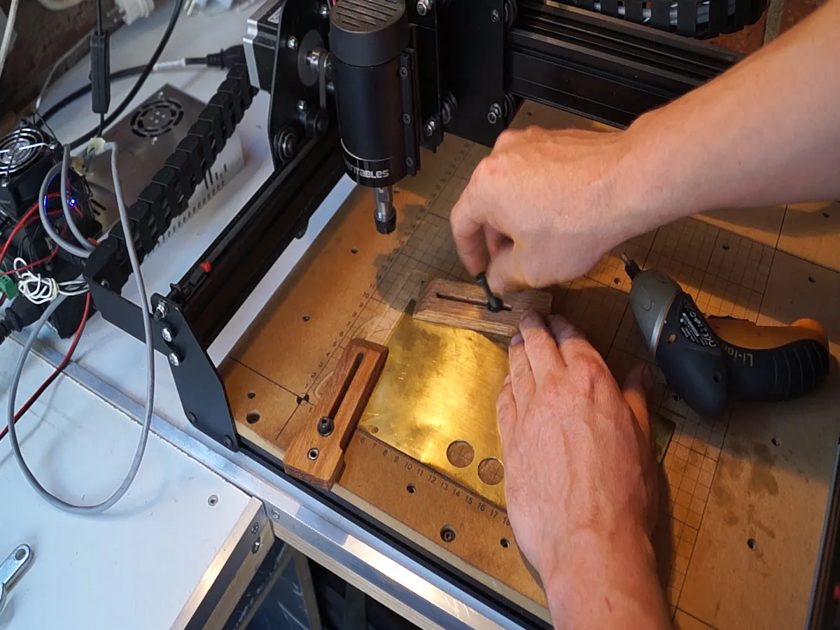 Make sure to clamp down tightly and that your stock it flat to the waste board. mine wasn't completely flat and almost engraved to the brass. Take your time to measure and clamp down your material.