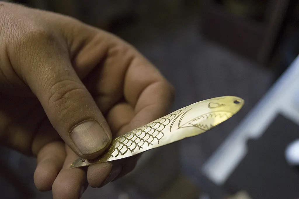 Use the hook and a eye from a old lure (or buy new ones) and attach it to the brass lure using needle pliers. you can cut a piece of thin (colorfull) plastic to cut a tail as a tail if you like.