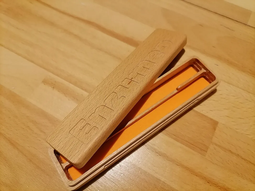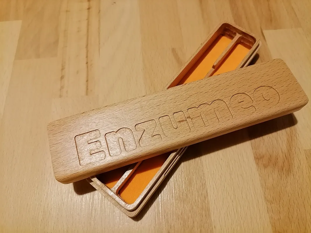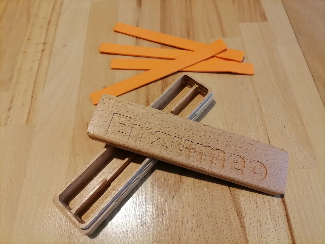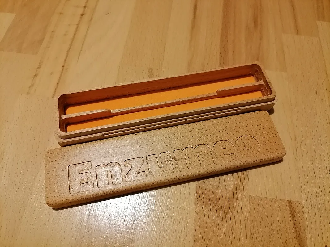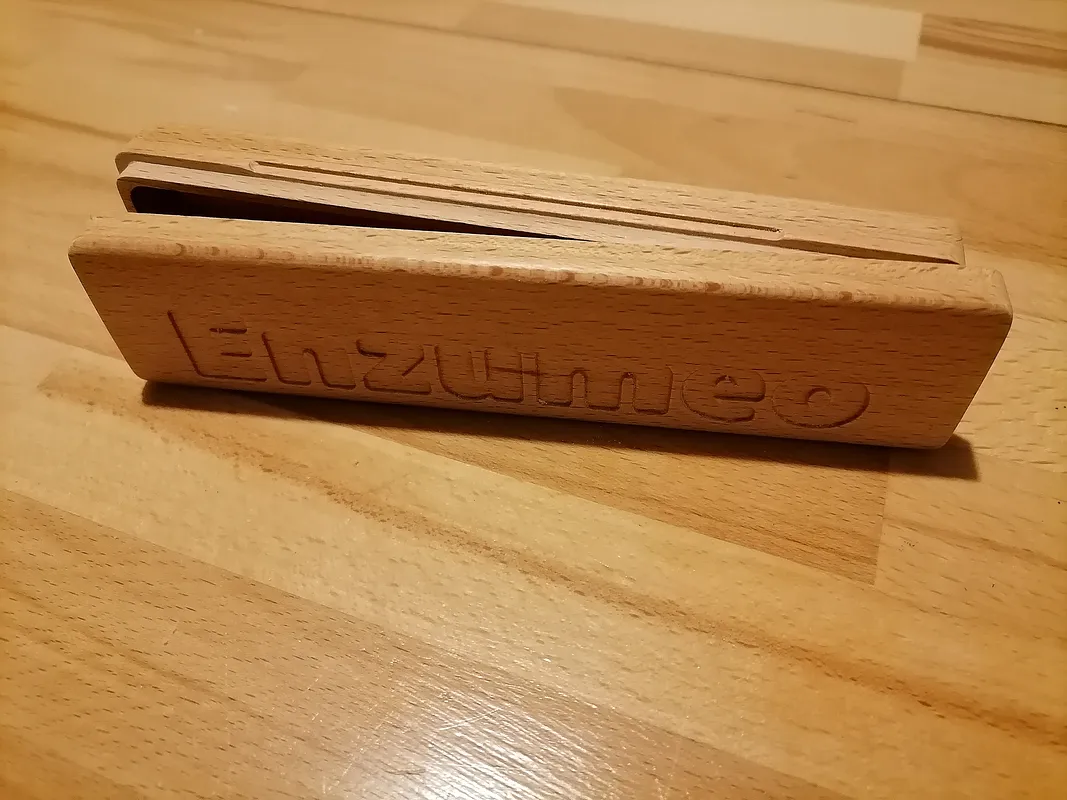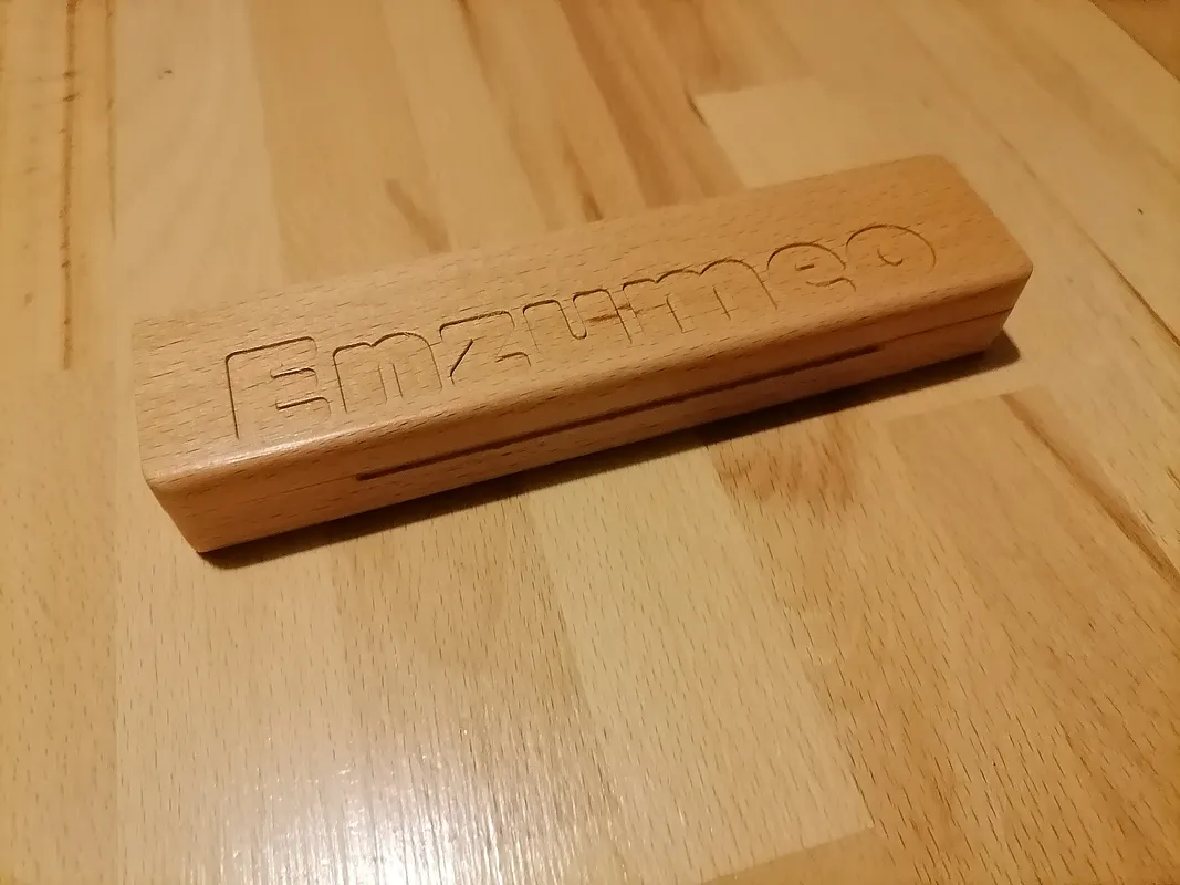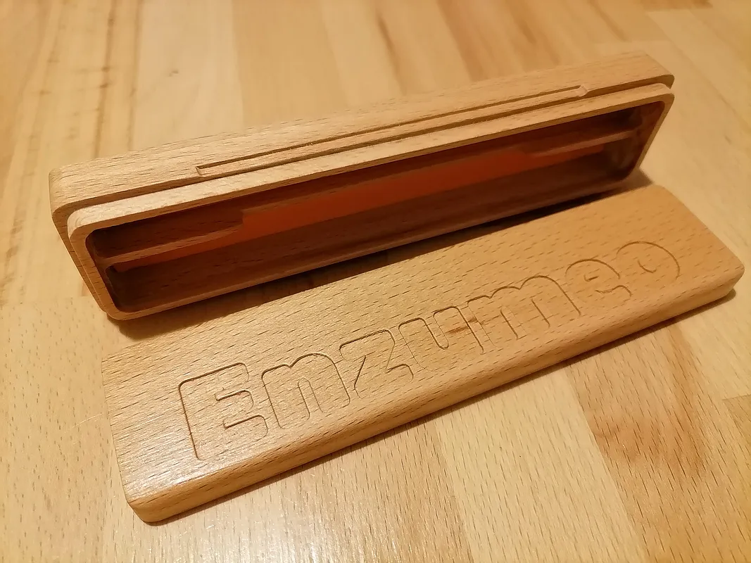 A pen holder in beech wood strips made with cnc 3018. "Enzumeo" in Sicilian means "Enzo mio".
