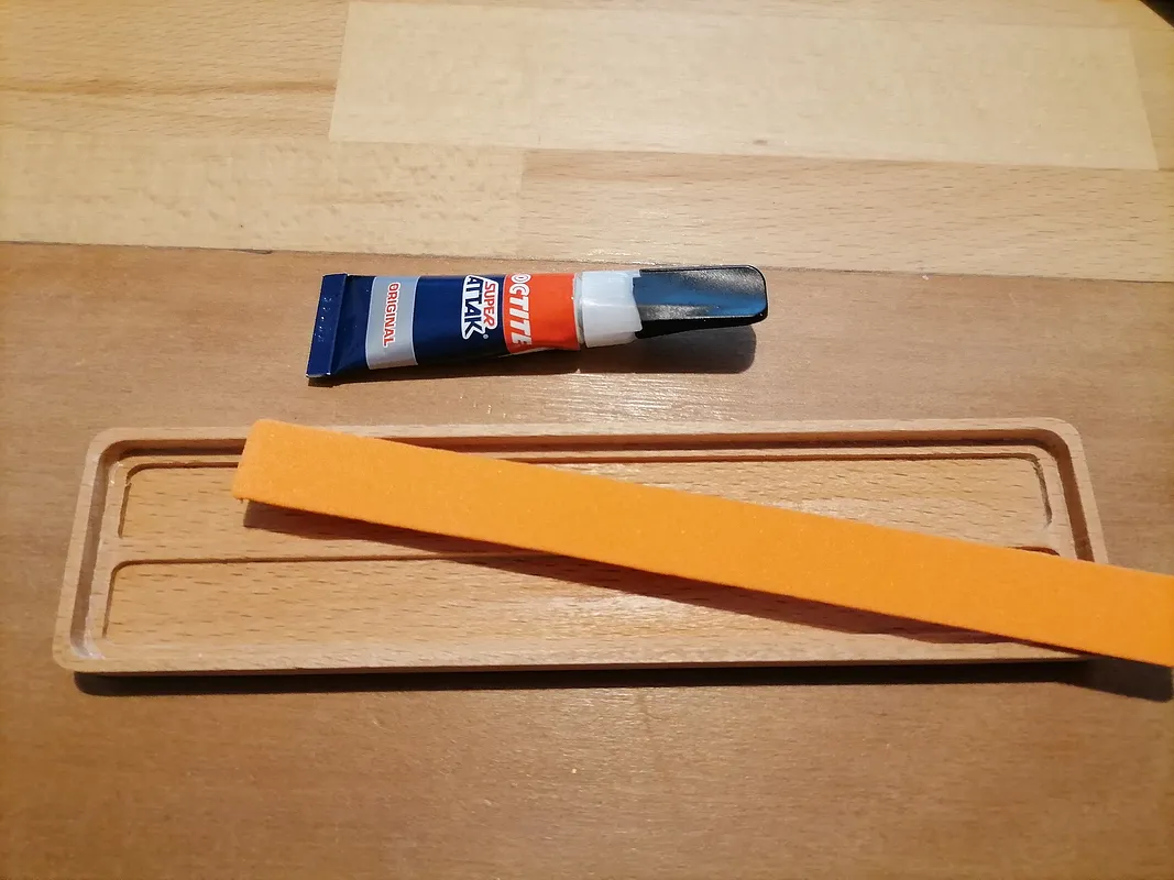 Various 5mm beech strips is glued together and 2mm foam inserts.